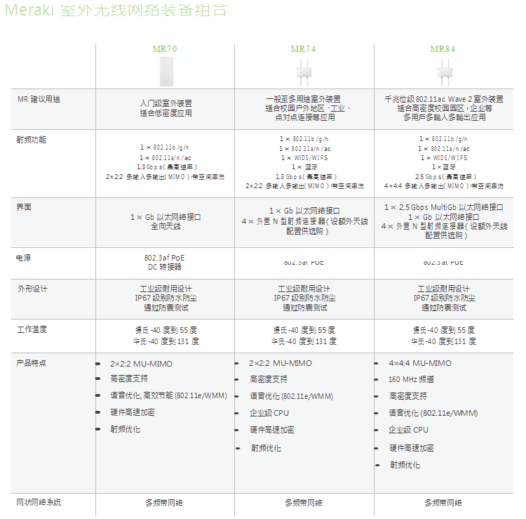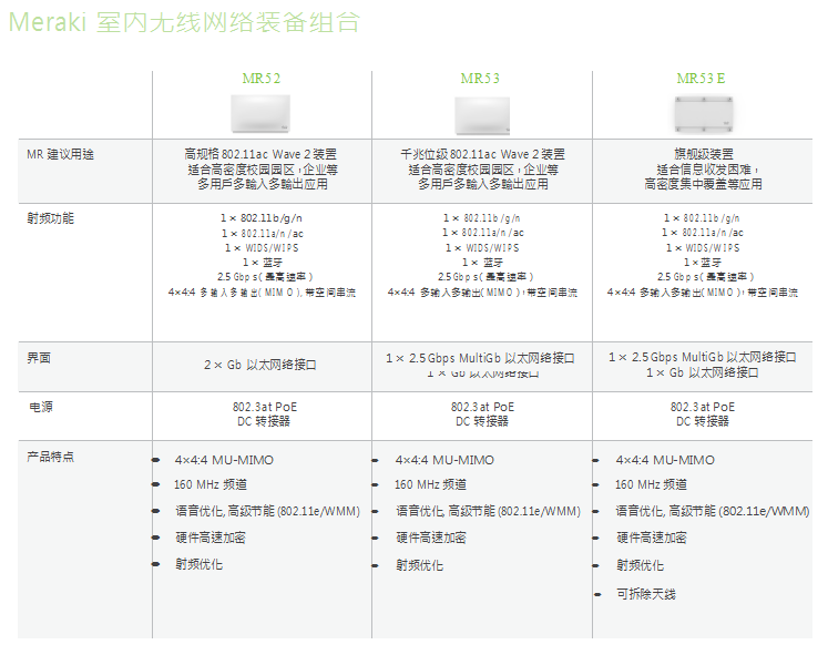 Meraki MR無線接入點系列包含現代企業(yè)級所需的所有以太網絡特性,其中包括: